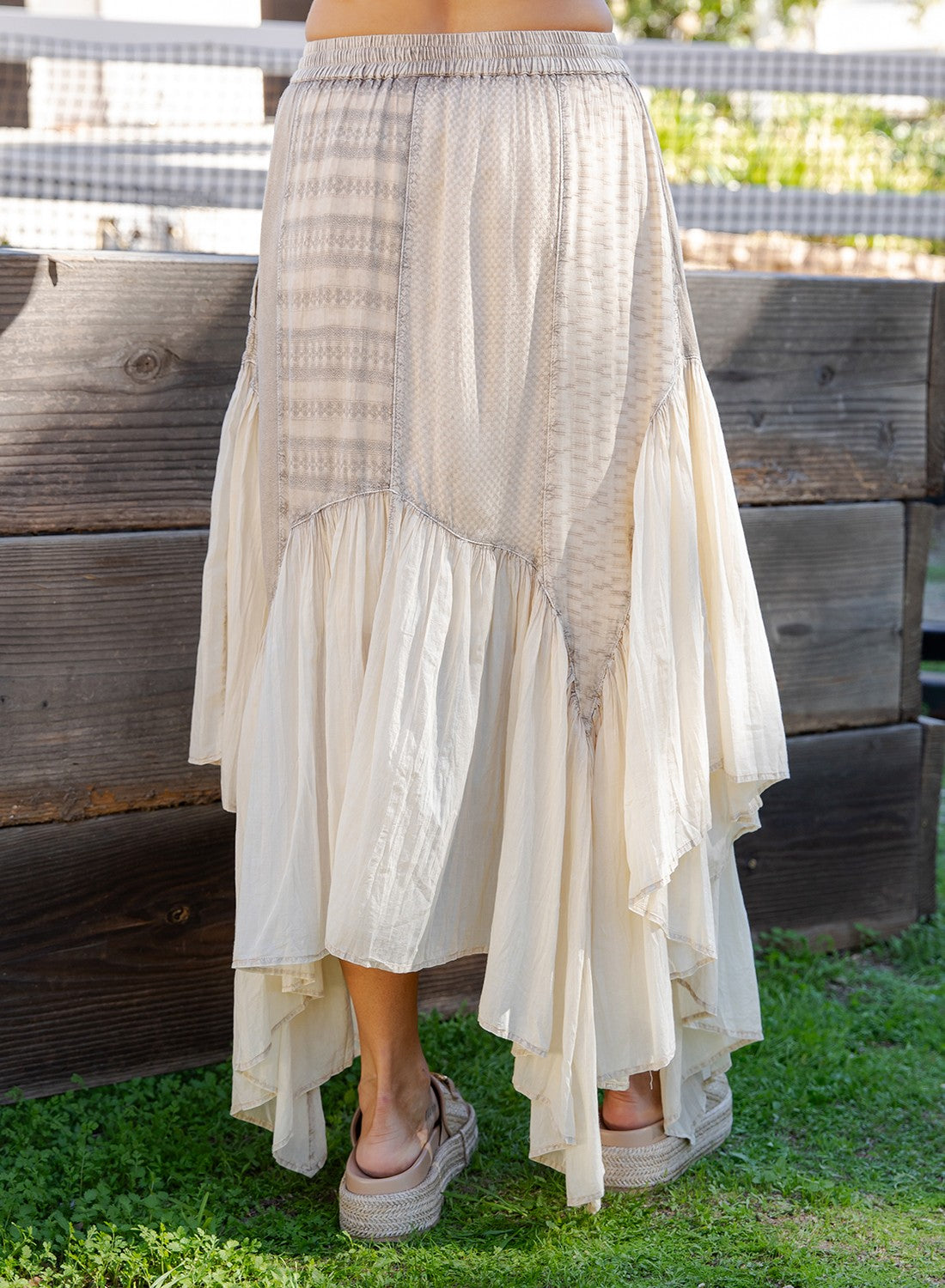 Boho Mixed Panel Drawstring Handkerchief Skirt