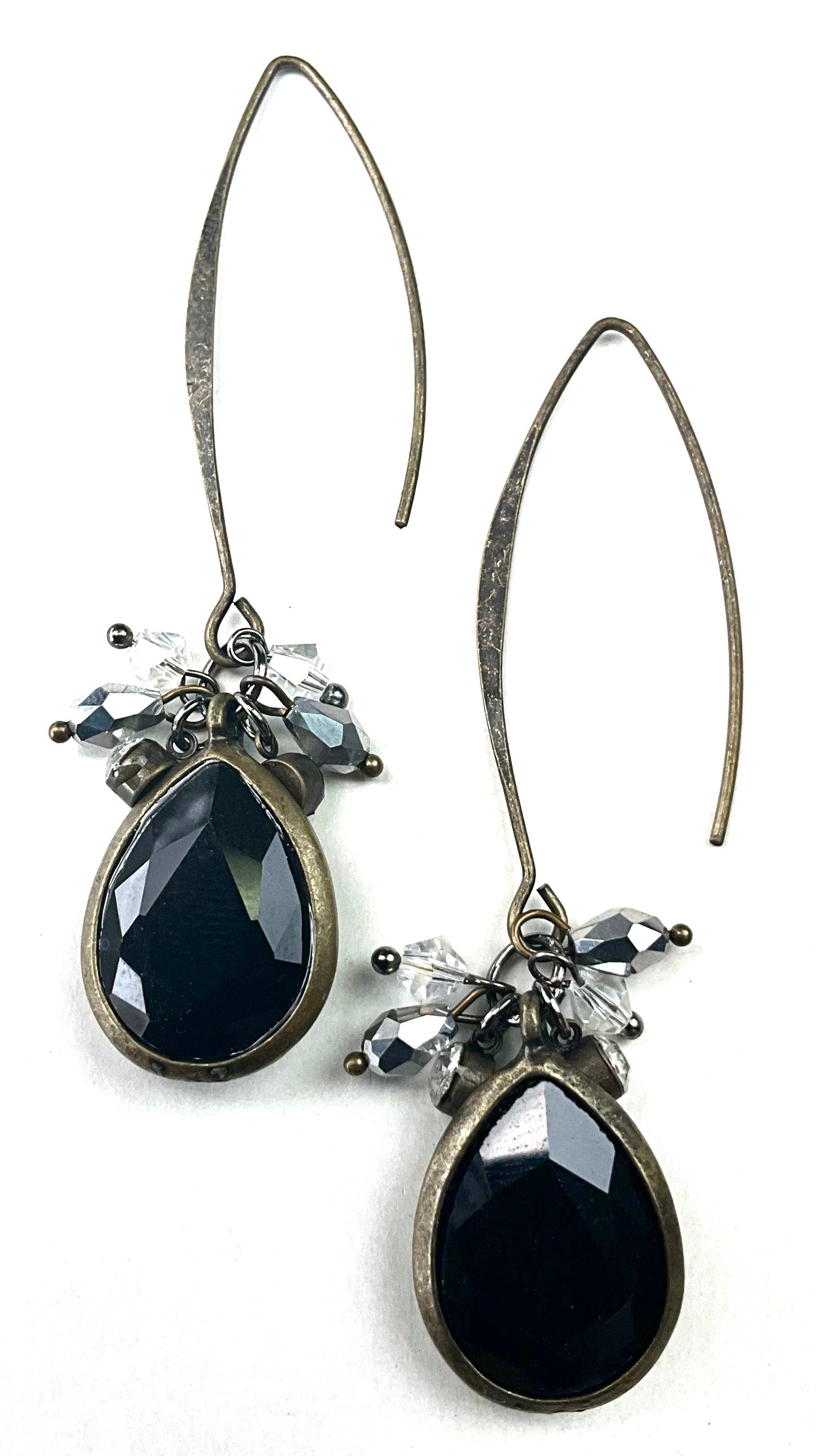 EARRINGS-OPEN KIDNEY WIRE W/CLUSTER DROP