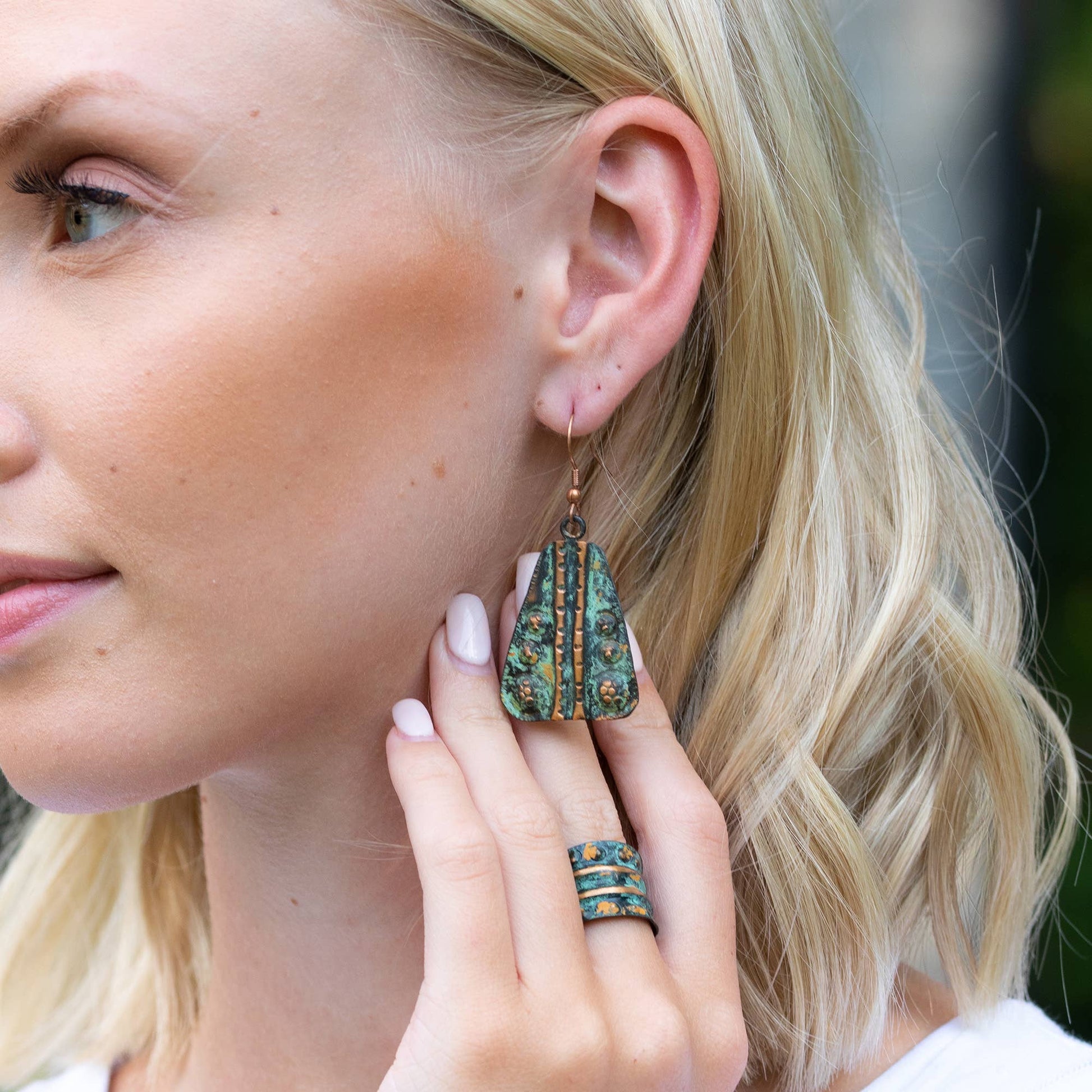 Copper patina earrings, handcrafted by artisans. Earring wires are nickel and cadmium free.