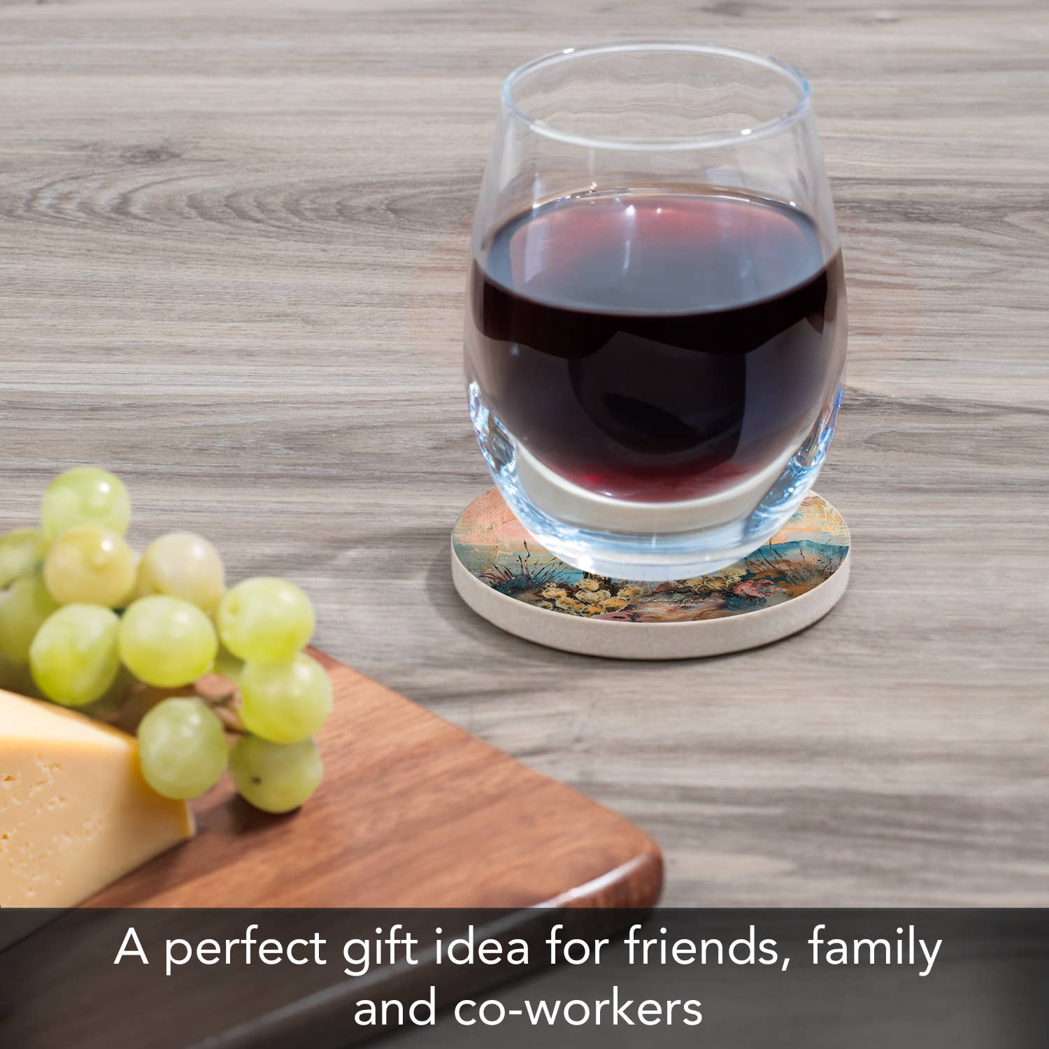 Manufactured in the USA of absorbent stone to absorb excess condensation from beverages. Assists to keep your car's cup holder clean and dry. Convenient notch on side of the car coaster, makes it easy to remove while detailing your car. Beautiful artwork adds distinction to your vehicle’s interior. Clean the coaster by wiping clean with damp cloth and mild detergent. Measures 2.6 inches round and fits most vehicle cup holders. Find that special design to complete your vehicle's personality. Family and Friends will love receiving these long lasting, attractive Coasters for any occasion of the year. Comes in Polybag with Hang Tab.