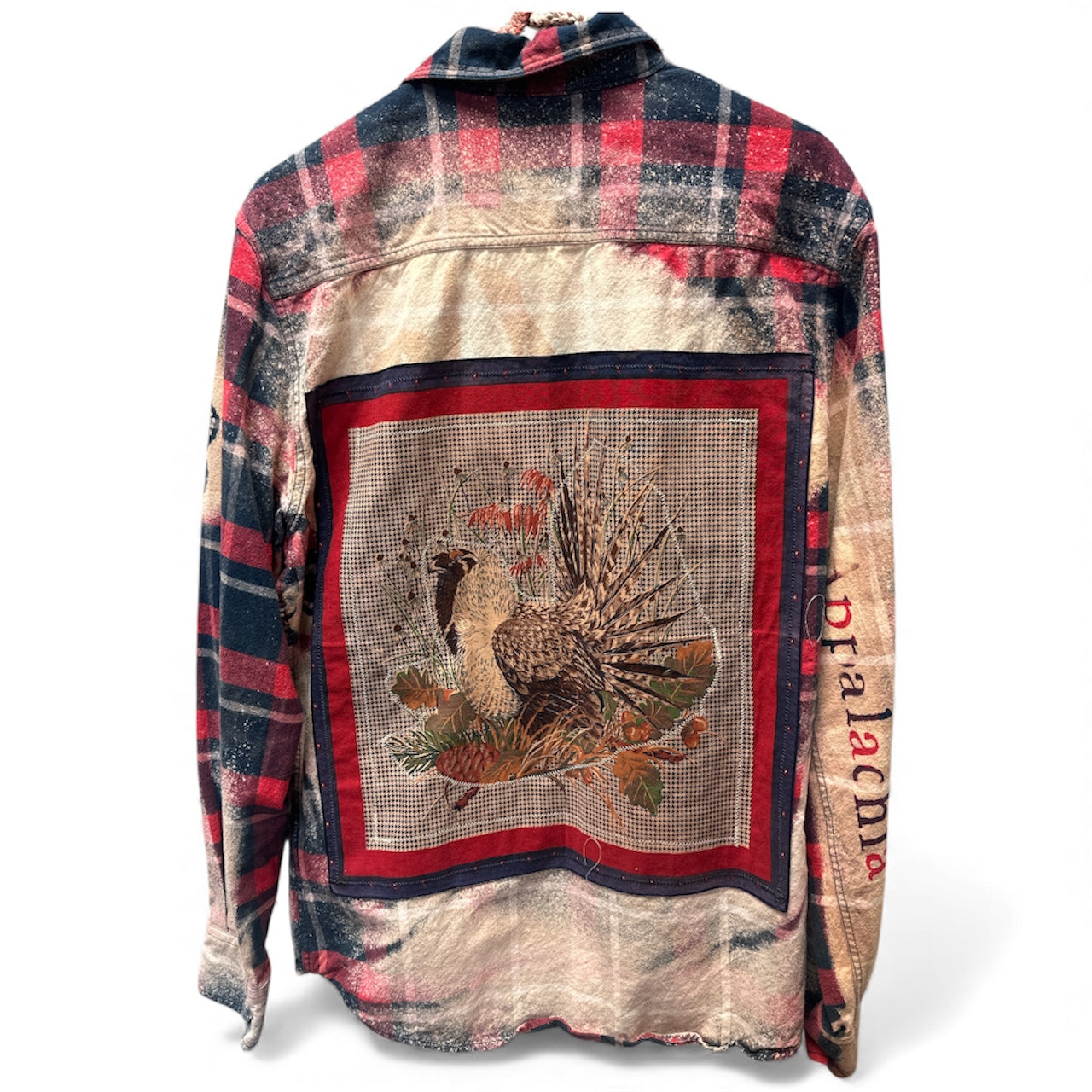 Each shirt is an upcycled mens flannel so they will run a little oversized. Every flannel is unique, some have holes and distressing from being worn others have appliques from antique quilts and vintage scraps of history.
