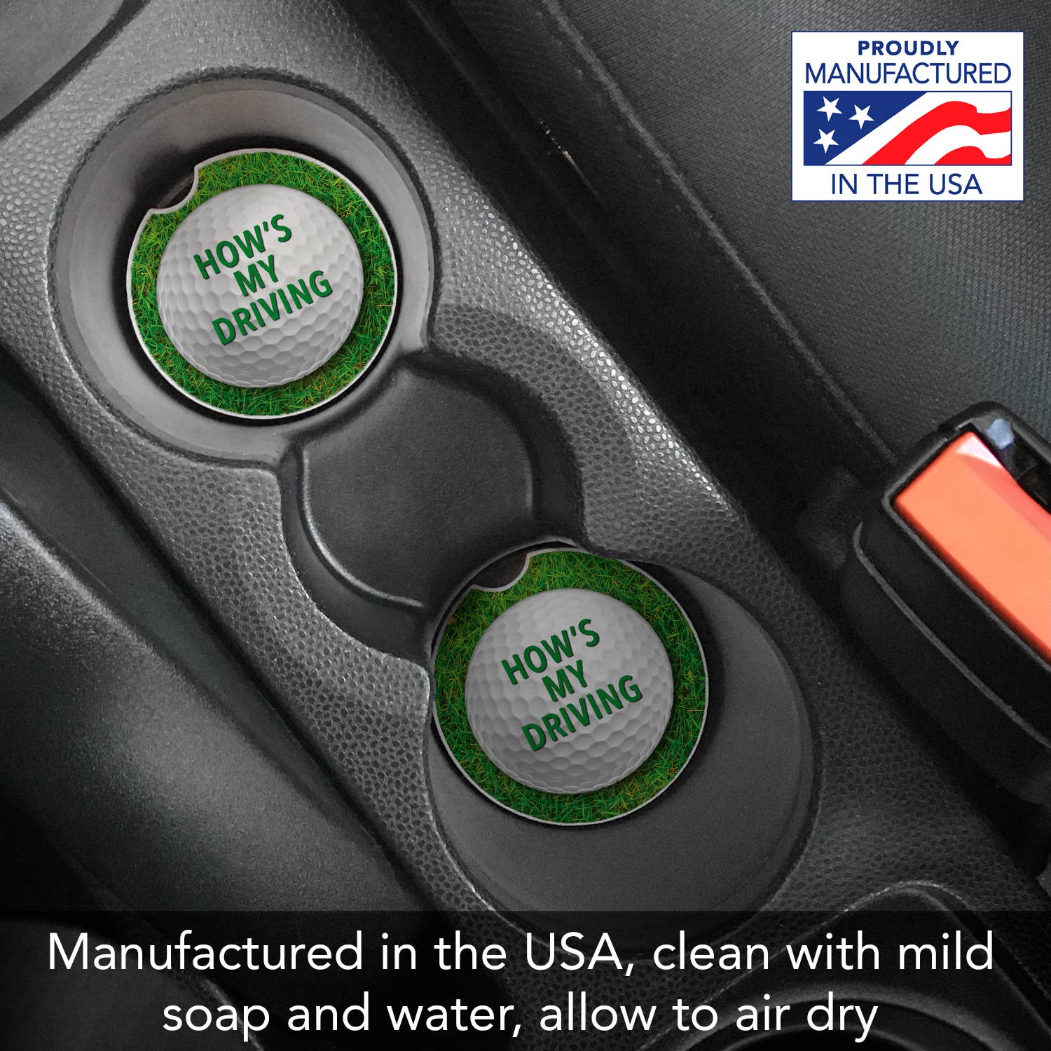 Manufactured in the USA of absorbent stone to absorb excess condensation from beverages. Assists to keep your car's cup holder clean and dry. Convenient notch on side of the car coaster, makes it easy to remove while detailing your car. Beautiful artwork adds distinction to your vehicle’s interior. Clean the coaster by wiping clean with damp cloth and mild detergent. Measures 2.6 inches round and fits most vehicle cup holders. Find that special design to complete your vehicle's personality. Family and Friends will love receiving these long lasting, attractive Coasters for any occasion of the year. Comes in Polybag with Hang Tab.