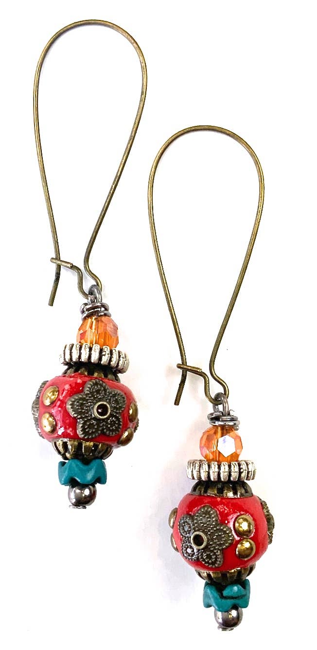 LS381 ER-Fancy Bead Drop On Kidney Wire