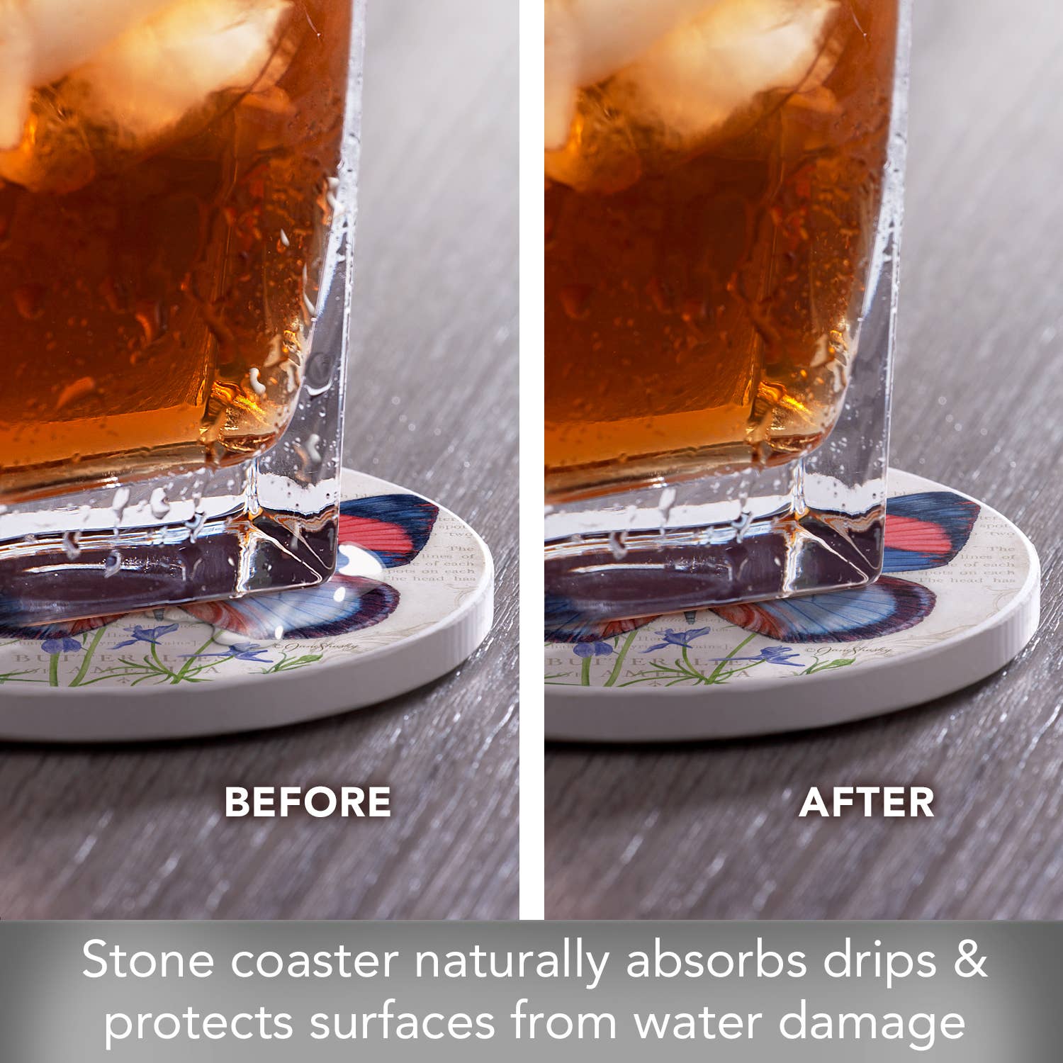 Manufactured in the USA of absorbent stone to absorb excess condensation from beverages. Assists to keep your car's cup holder clean and dry. Convenient notch on side of the car coaster, makes it easy to remove while detailing your car. Beautiful artwork adds distinction to your vehicle’s interior. Clean the coaster by wiping clean with damp cloth and mild detergent. Measures 2.6 inches round and fits most vehicle cup holders. Find that special design to complete your vehicle's personality. Family and Friends will love receiving these long lasting, attractive Coasters for any occasion of the year. Comes in Polybag with Hang Tab.