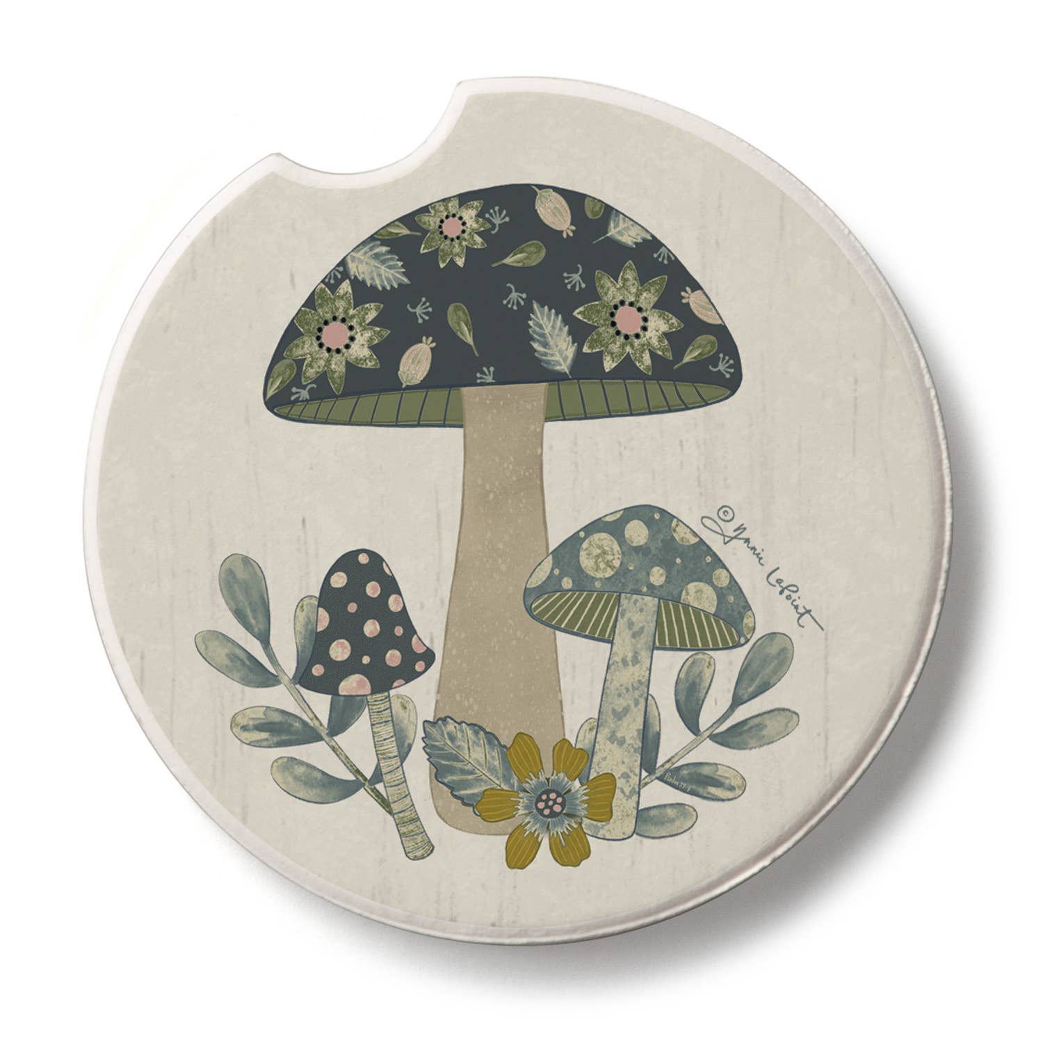 "Patterned Mushrooms" Absorbent Stone Car Coaster