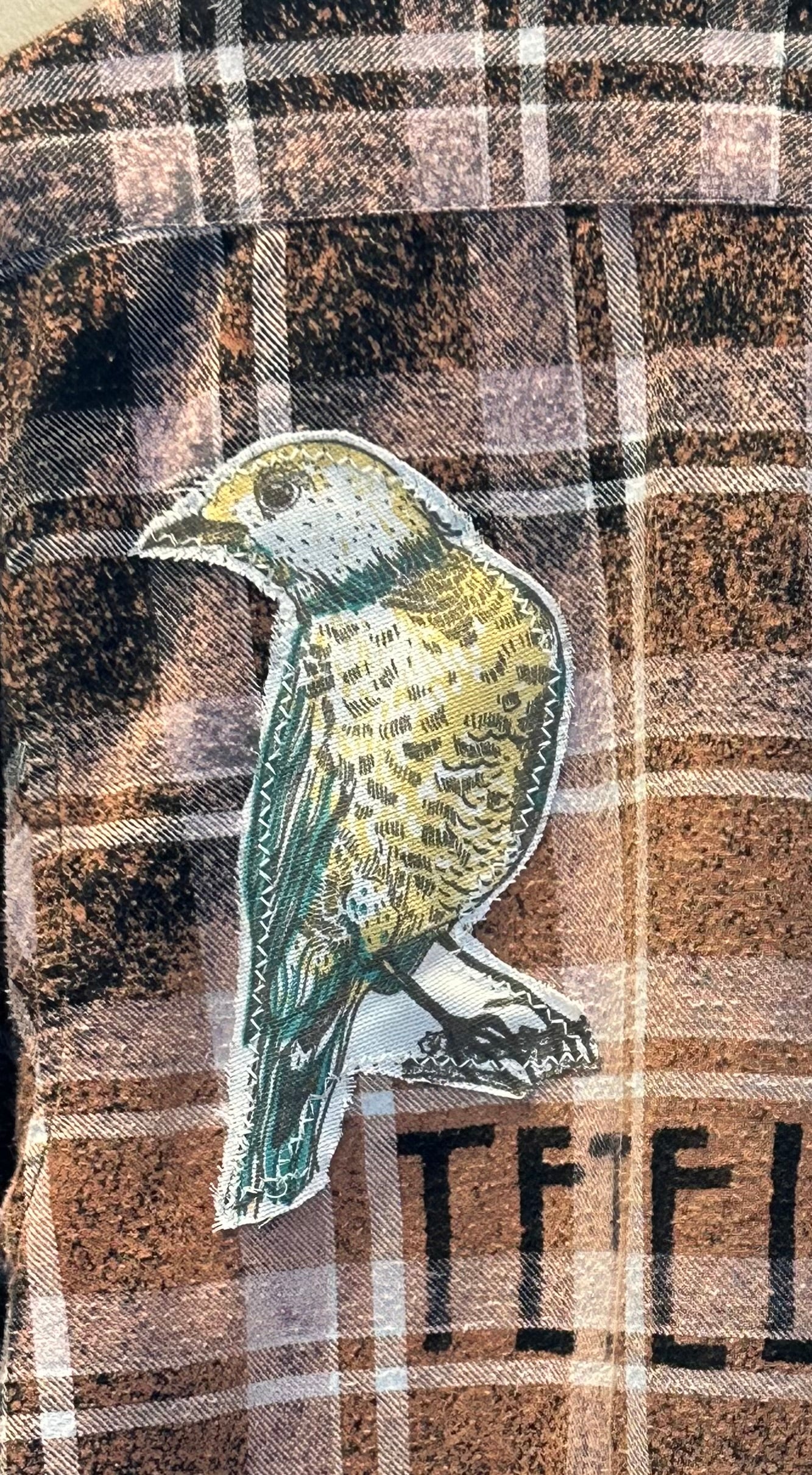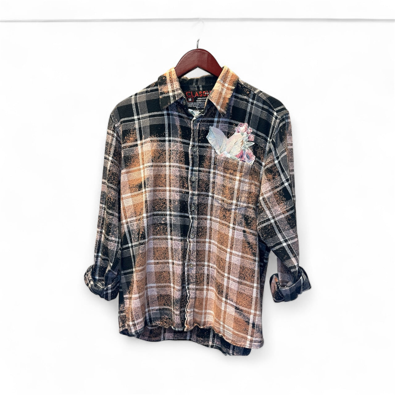 Each shirt is an upcycled mens flannel so they will run a little oversized. Every flannel is unique, some have holes and distressing from being worn others have appliques from antique quilts and vintage scraps of history.